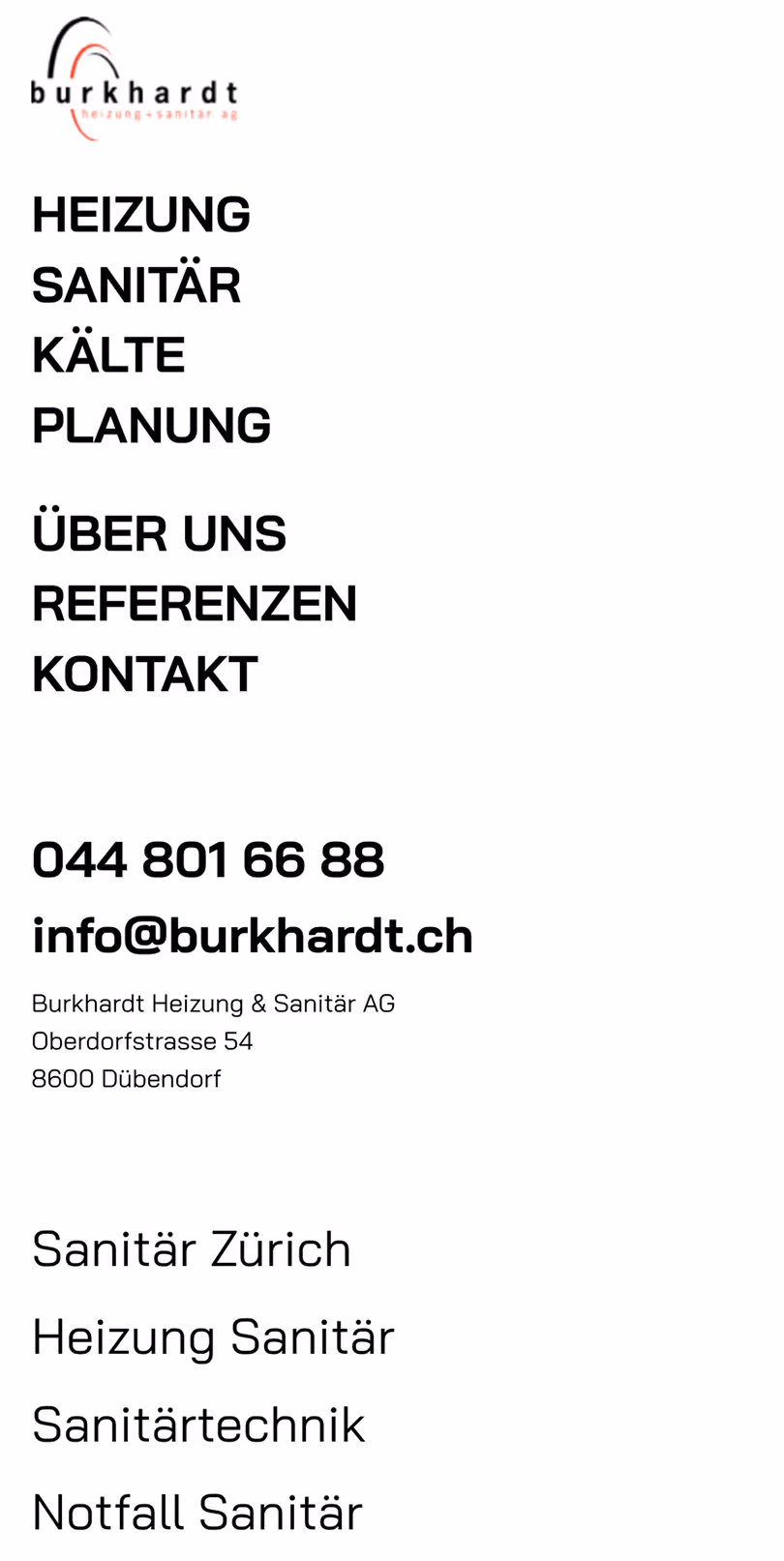 Die neue Website von Burkhardt Sanitär vereint professionelle und übersichtliche Service-Informationen, die Kunden eine einfache und effiziente Navigation ermöglichen und das breite Dienstleistungsangebot hervorheben.