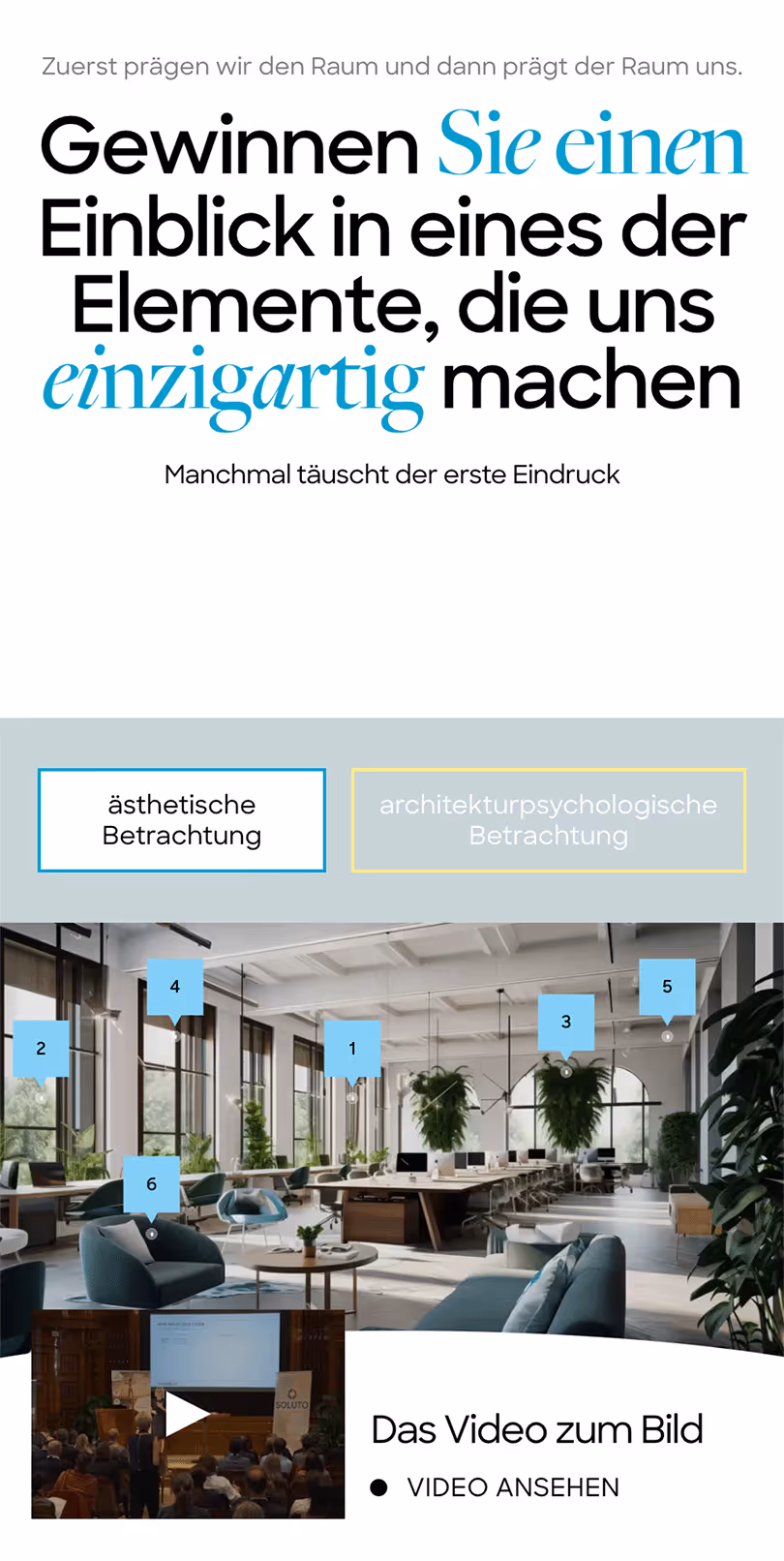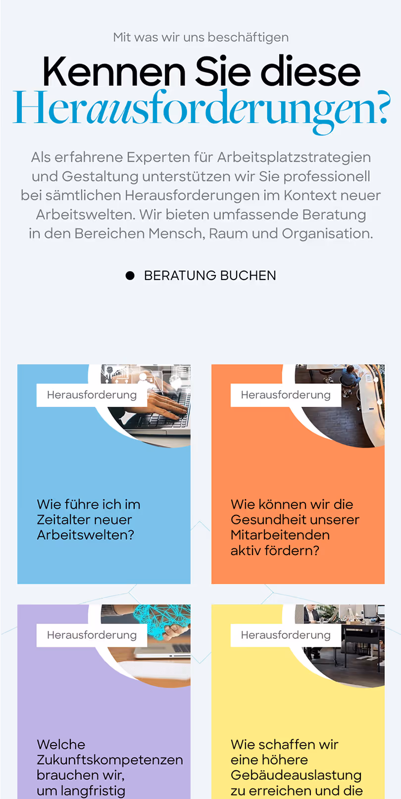 Die modernisierte Website von Gauer Consulting hebt die Kernkompetenzen im Bereich Workplace Change und Organisationsentwicklung nun noch deutlicher hervor. Besonders erwähnenswert ist das neu integrierte Element, das die Bedeutung der Architekturpsychologie veranschaulicht und zeigt, wie dieser Ansatz in die Beratung eingebunden wird.