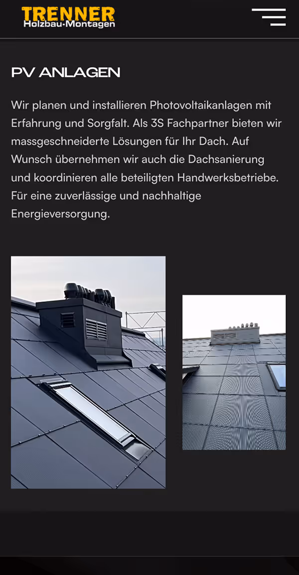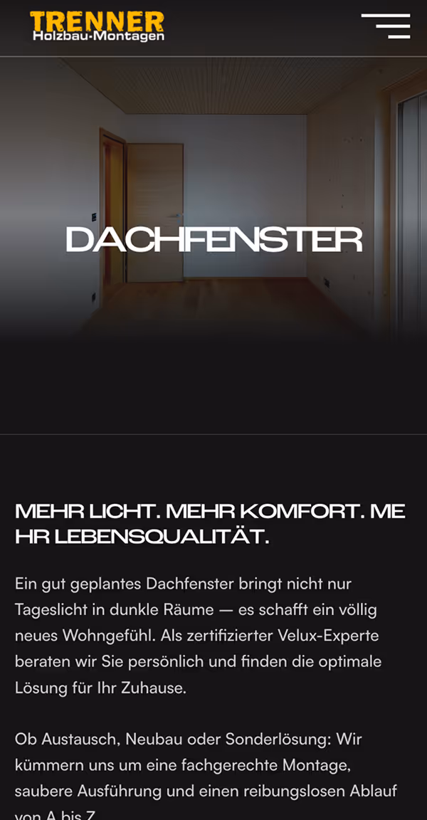 Im Fokus stand eine Website, die die Werte des Unternehmens transportiert: persönliche Betreuung, ehrliche Kommunikation und nachhaltige Lösungen. Trenner Holzbau ist vom ersten Termin bis zur Fertigstellung direkt an der Seite seiner Kundschaft und realisiert Projekte, die funktional, ästhetisch und langlebig sind. Diese Haltung übersetzten wir in ein klares Design und eine intuitive Nutzerführung.